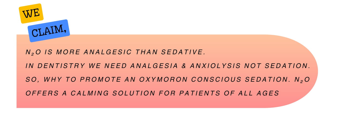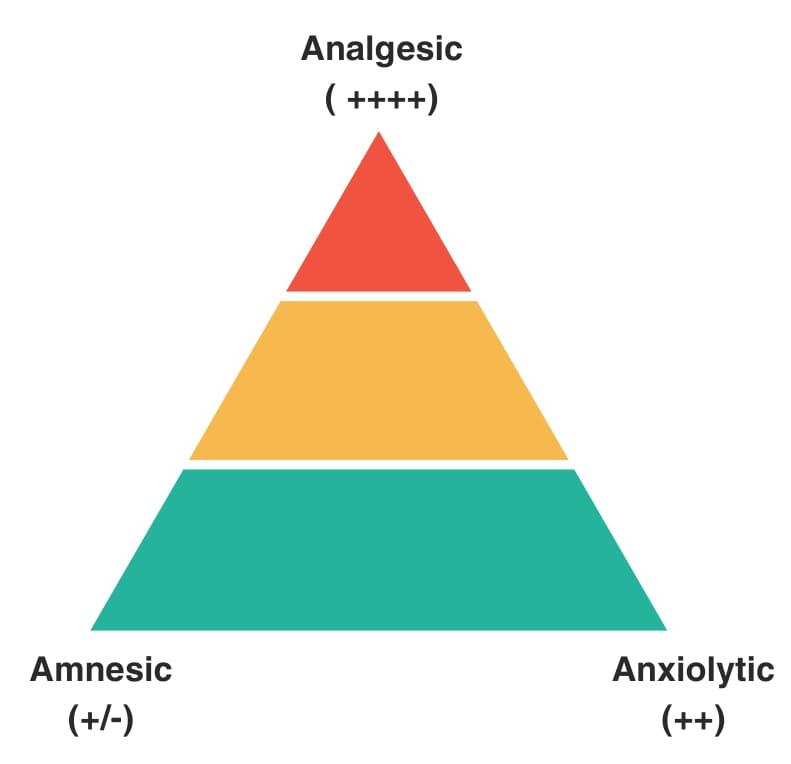 Loss of sensation of pain that results from an interruption in the nervous system pathway between sense organ and brain. Nitrous oxide (N₂O) at concentrations below 50% is primarily utilized as an analgesic and anxiolytic agent rather than as a primary sedative.